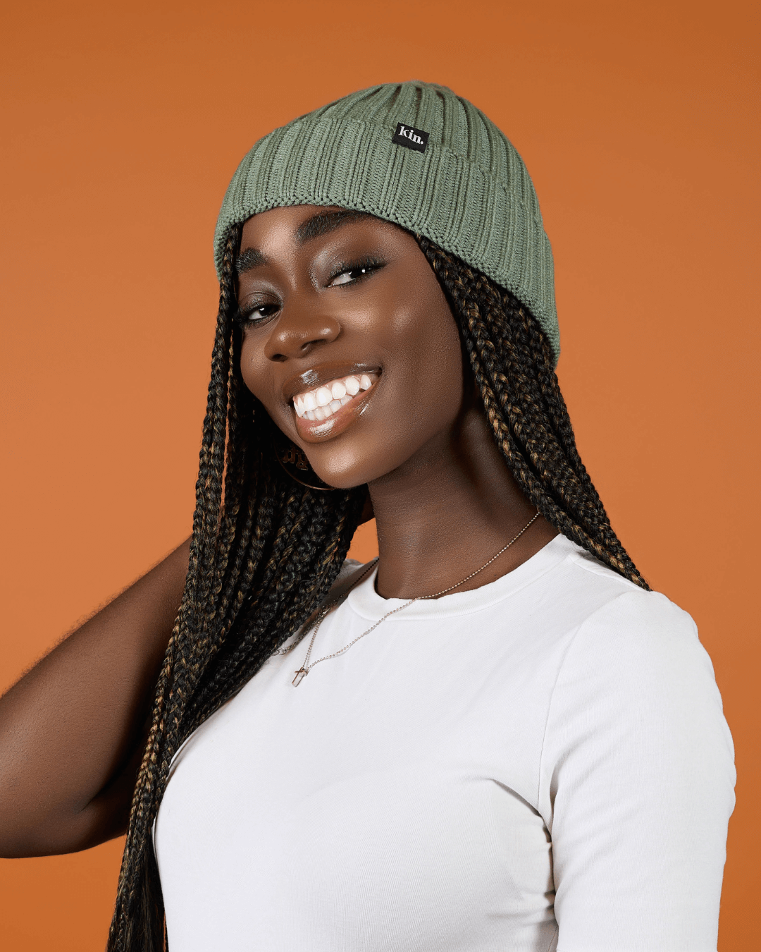Olive Green Short Satin Lined Beanie