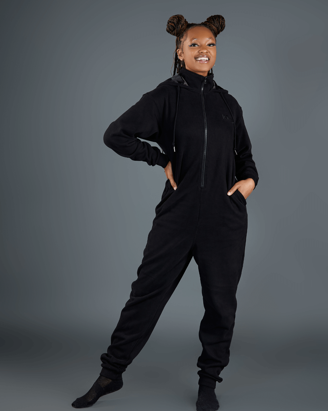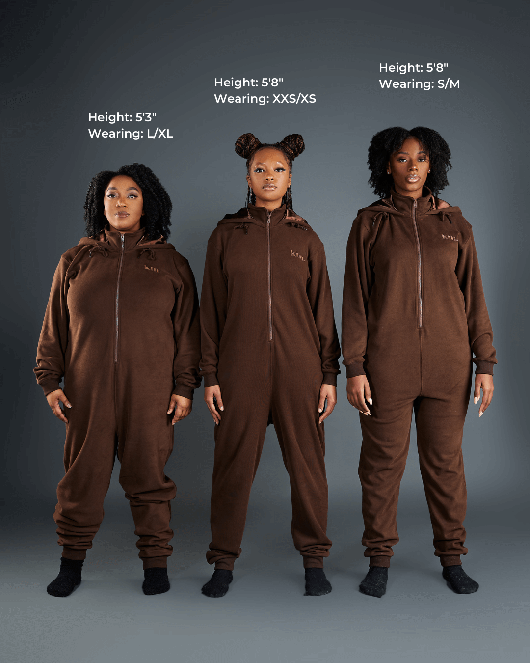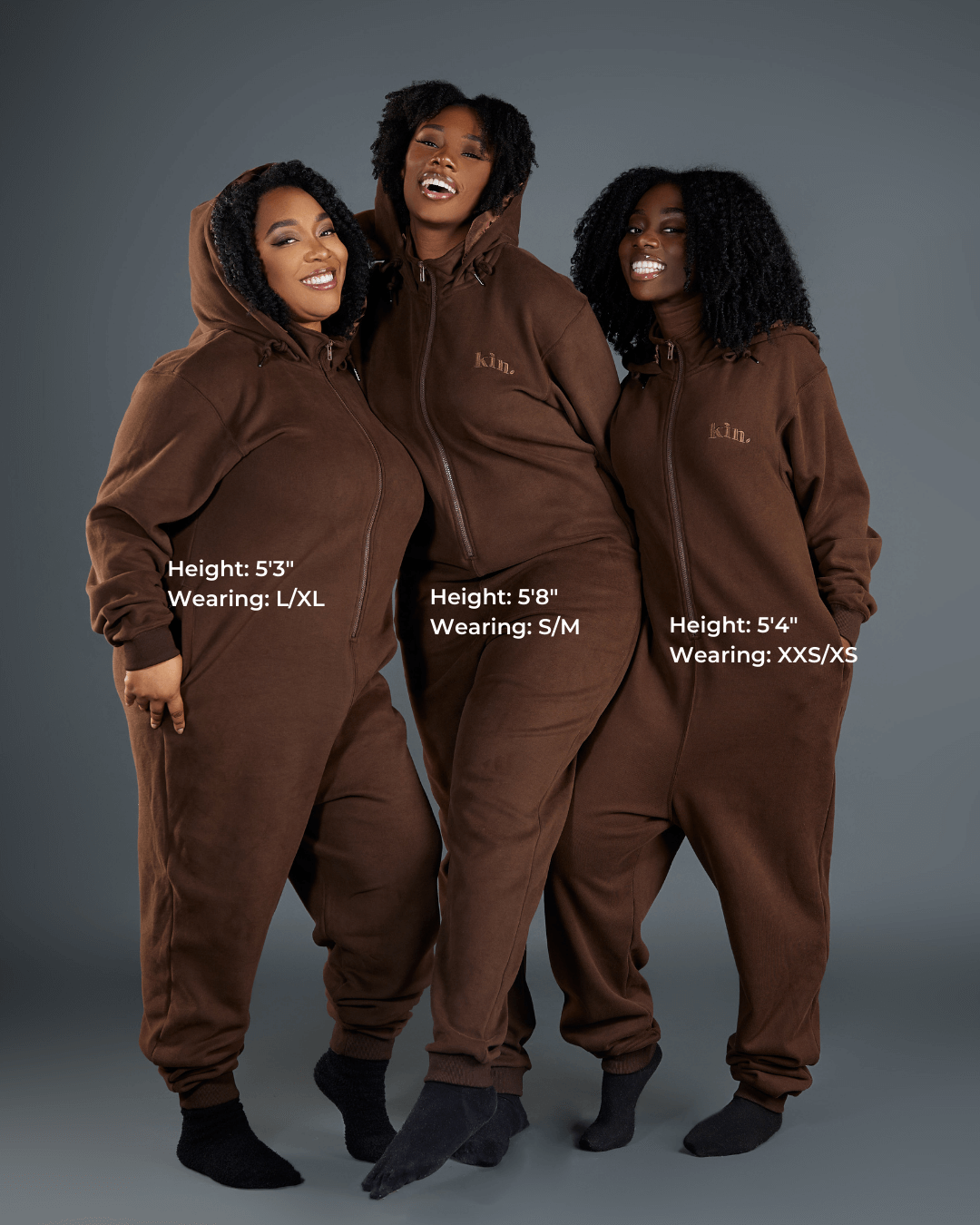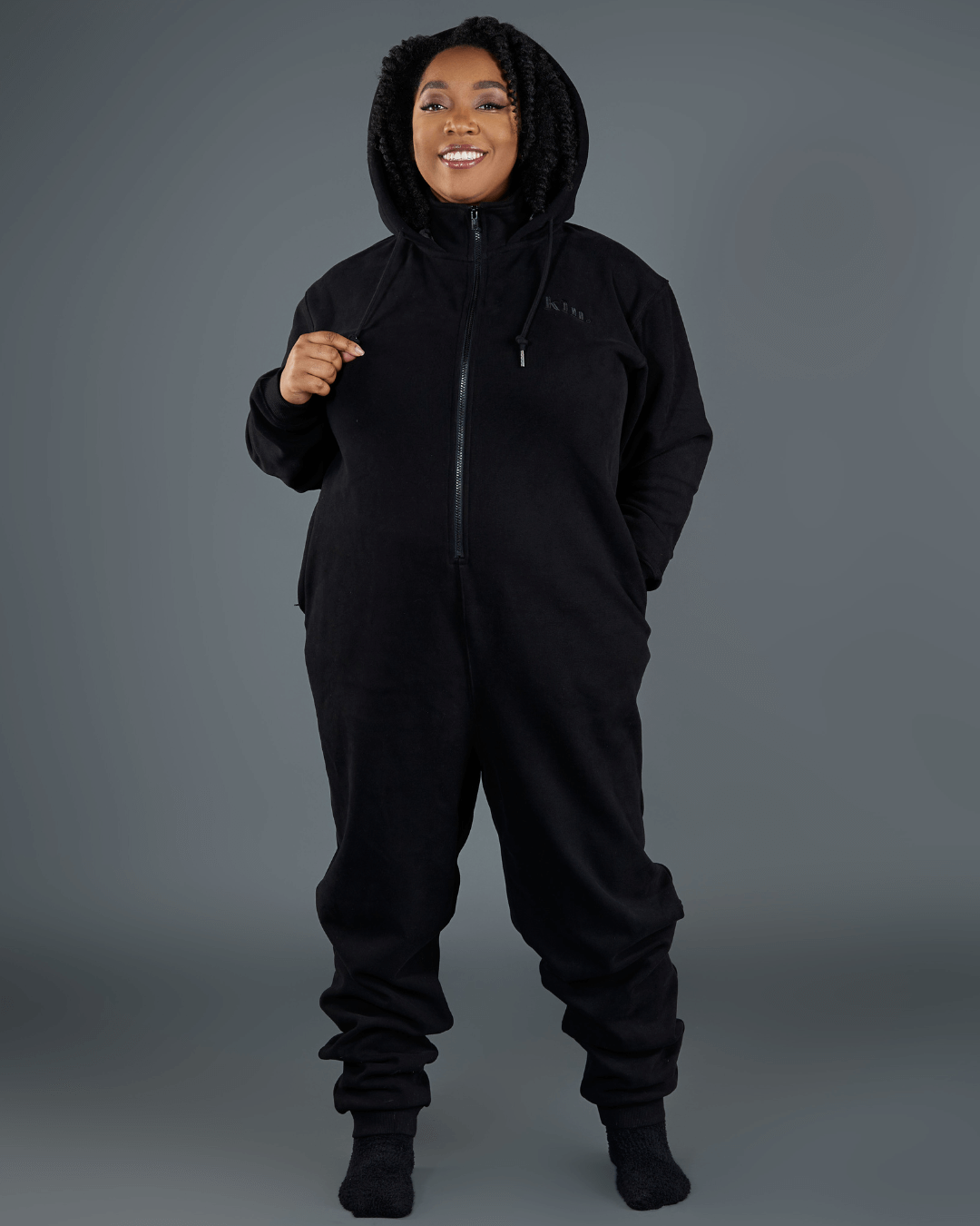 Designed for those who crave comfort and style, the KINsie is your go-to for cozy nights in, weekend errands, work-from-home days, sleepovers, and even a playful date-night fit. Made with butter-soft light-fleece fabric and finished with a warm mock-neck, it delivers unmatched coziness without compromising movement. The unisex, roomy fit lets you stretch, lounge, and relax with zero restrictions. This onesie is so unique, so KIN, we had to give it its own name: The KINsie.