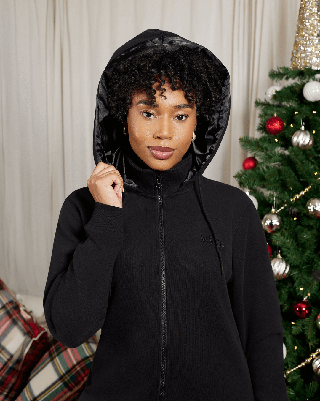 Designed for those who crave comfort and style, the KINsie is your go-to for cozy nights in, weekend errands, work-from-home days, sleepovers, and even a playful date-night fit. Made with butter-soft light-fleece fabric and finished with a warm mock-neck, it delivers unmatched coziness without compromising movement. The unisex, roomy fit lets you stretch, lounge, and relax with zero restrictions. This onesie is so unique, so KIN, we had to give it its own name: The KINsie.