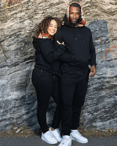- Hoodie color is black, satin color is kente