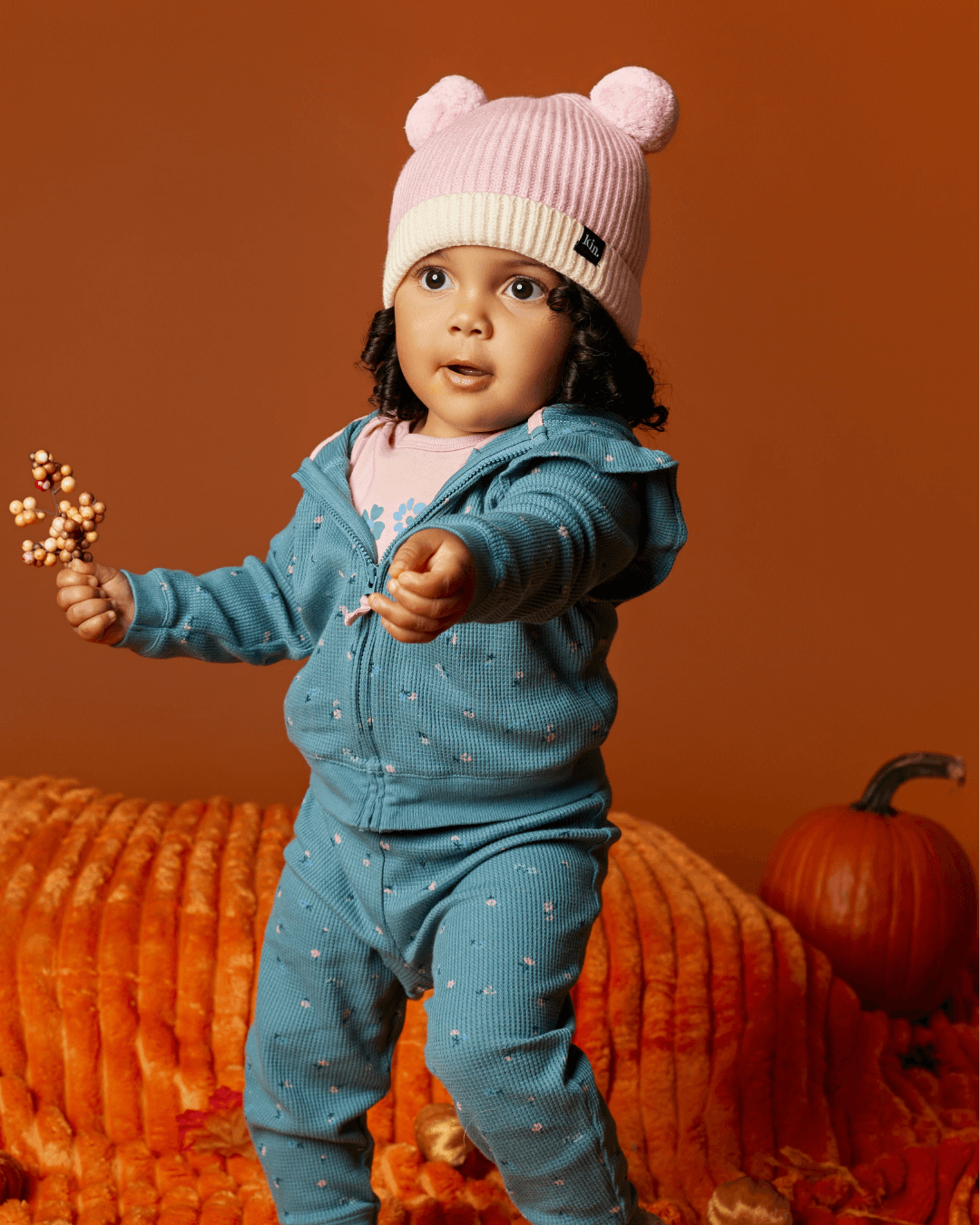 Whether it’s stroller walks or playground adventures, this beanie keeps them cozy while the classic KIN satin lining protects their delicate hair and scalp from dryness and friction.