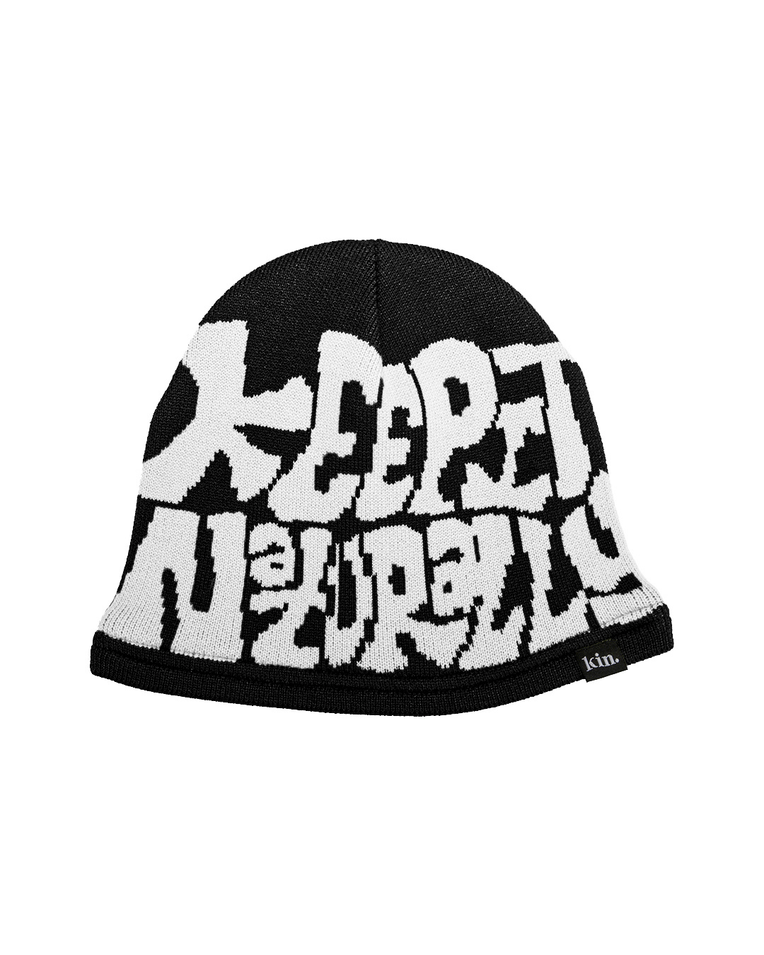 Black White Satin Lined Logo Beanie