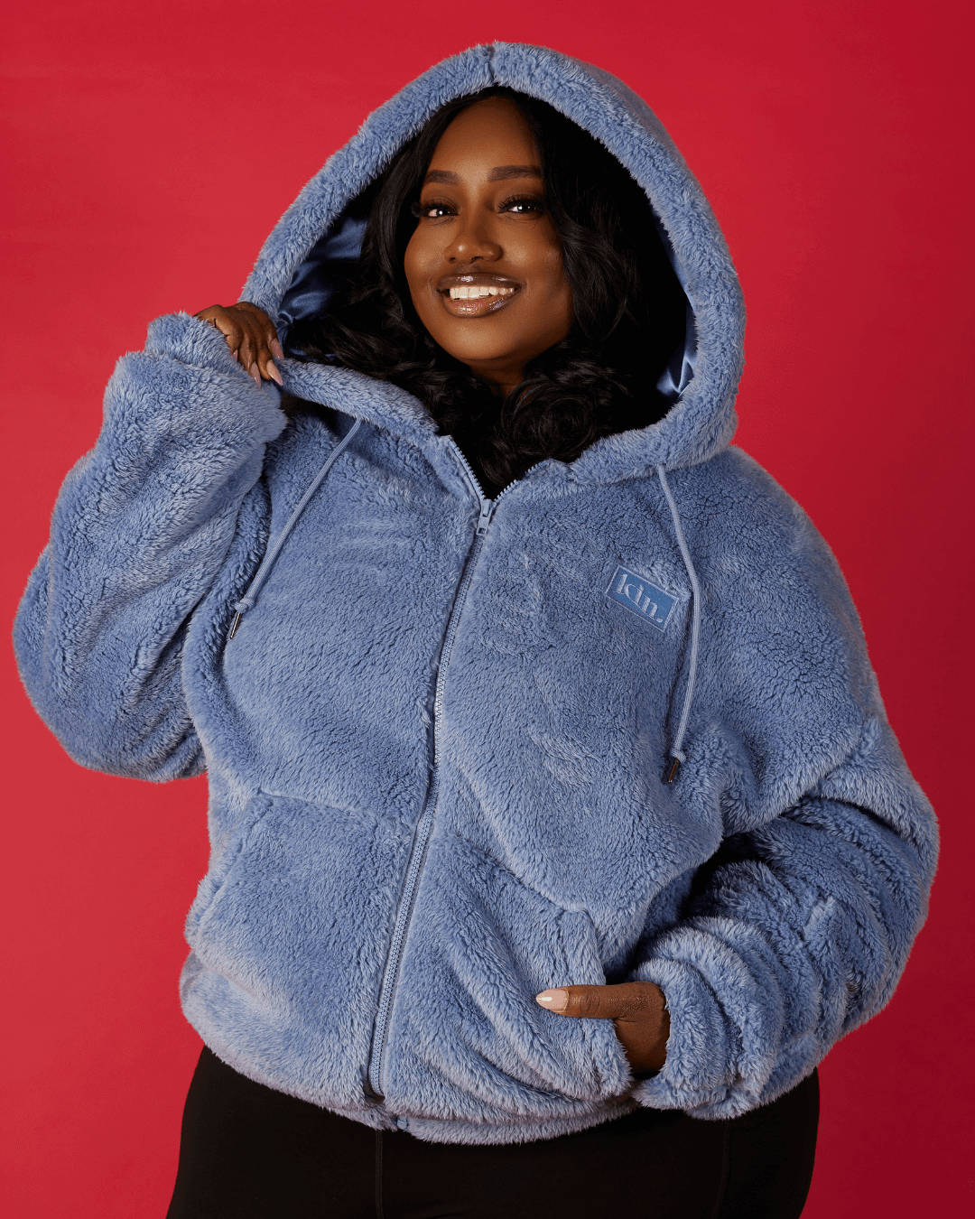 Wrap yourself in warmth. This ultra-soft, plush zip-up feels like a cozy teddy bear hug , perfect for chilly days. Its thick fleece offers high insulation, making it an ideal choice for lounging or stepping out in style. The oversized satin-lined hood protects your hair from frizz and friction while keeping you snug and stylish.