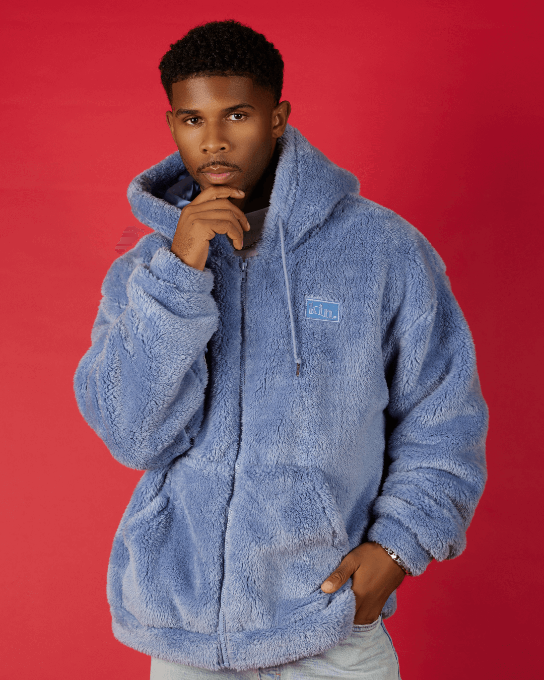 - Embroidered KIN logo on left chest