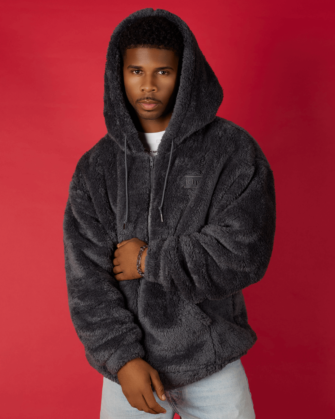 Charcoal Grey Thick Teddy Satin Lined Zip Up Hoodie