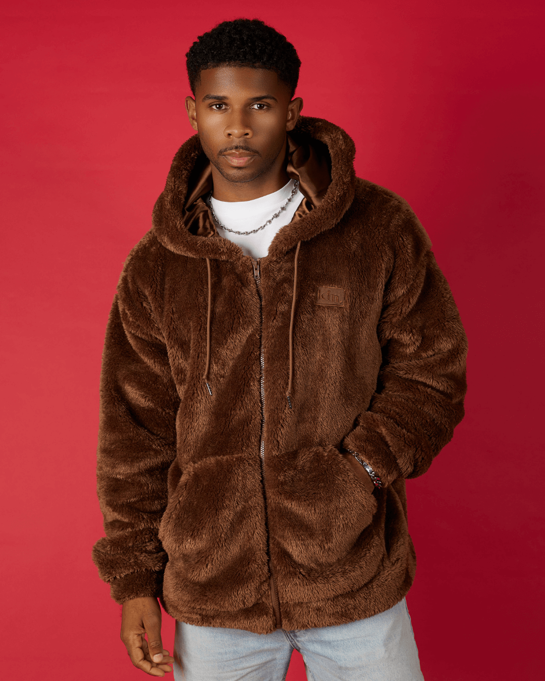 Chocolate Thick Teddy Satin Lined Zip Up Hoodie