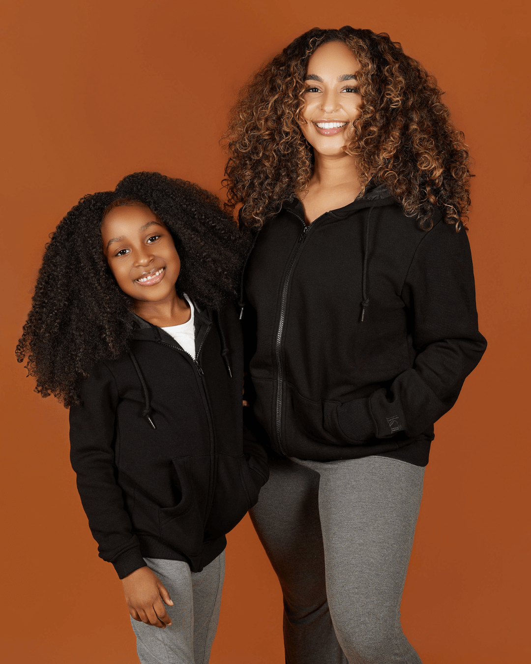 Give your little one the gift of cloud-like comfort. This kids’ satin-lined hoodie is made with the same plush, velvety fabric as our adult version, soft enough to feel like they’re wrapped in a warm hug all day long. The thick, blanket-like material keeps them cozy through chilly school mornings, playground adventures, and winter outings. The roomy satin-lined hood protects their curls, coils, braids, and tender heads while adding a touch of everyday style.