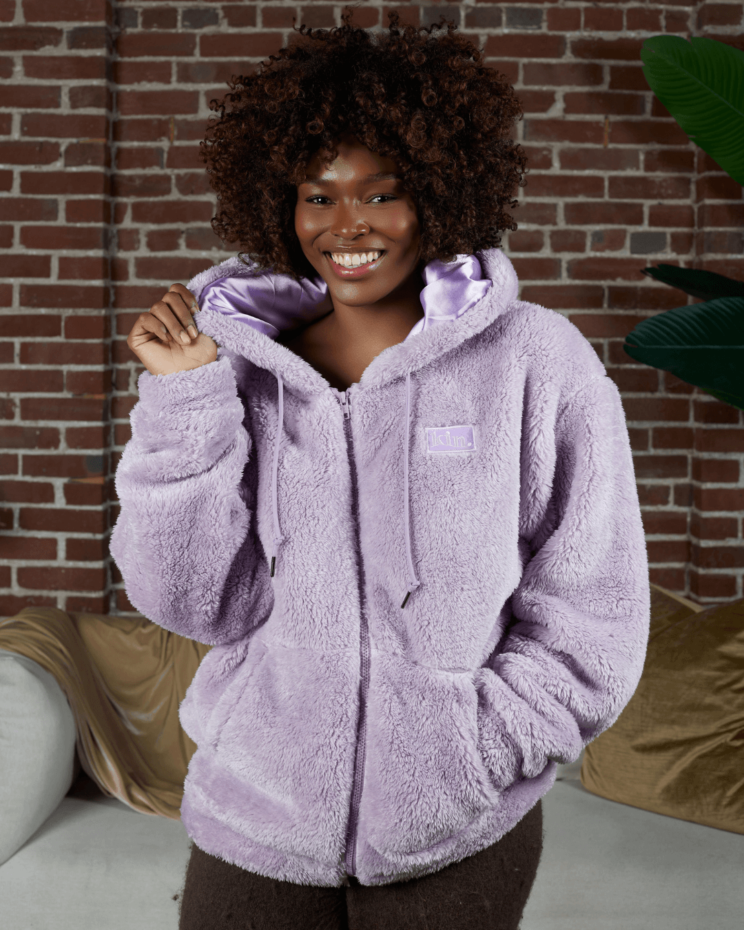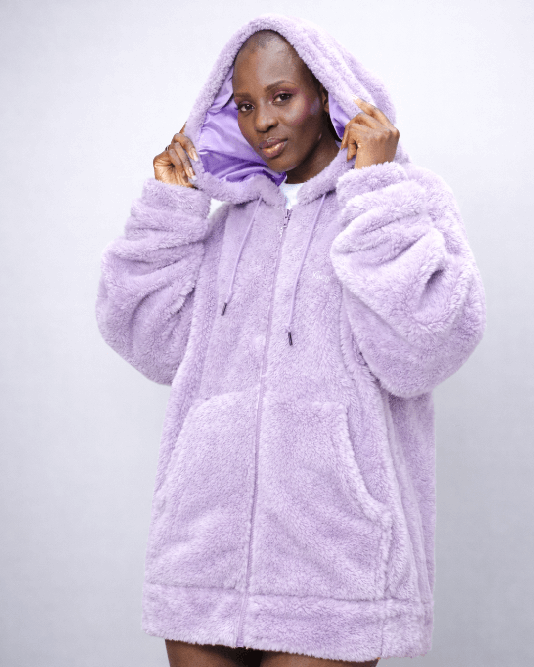Wrap yourself in warmth. This ultra-soft, plush zip-up feels like a cozy teddy bear hug — perfect for chilly days. Its thick fleece offers high insulation, making it an ideal choice for lounging or stepping out in style. The oversized satin-lined hood protects your hair from frizz and friction while keeping you snug and stylish.