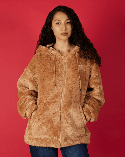 Mocha Thick Teddy Satin Lined Zip Up Hoodie