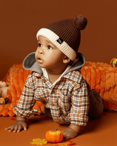 Whether it’s stroller walks or playground adventures, this beanie keeps them cozy while the classic KIN satin lining protects their delicate hair and scalp from dryness and friction.