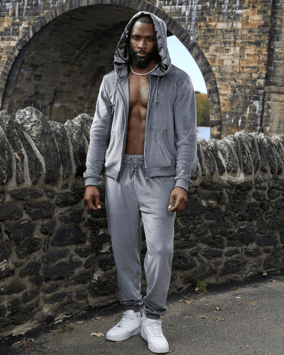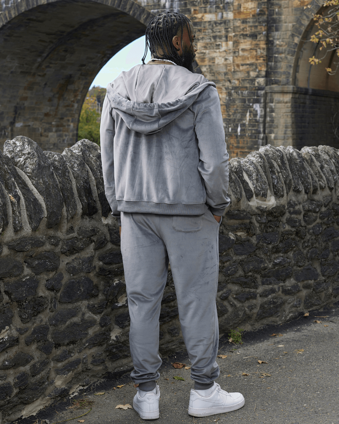 Hoodie Details:Full-zip hoodie crafted from ultra-soft velour for that classic tracksuit feel.Signature satin-lined hood for protection, comfort, and shine.Relaxed, unisex fit with just the right amount of drape.Front pockets for on-the-go ease.Ebroidered KIN logo on the left chest for a premium finish.Our “Keep It Naturally” motto subtly embroidered along the hood edgeMid-weight velvet fabric Jogger Details:Coordinating jogger-style pants with satin-lined pockets for a smooth, premium touch.Elastic waistband and cuffed hems for a secure, tailored feel.Designed for versatility, lounge in it, layer it, live in it.Features an embroidered KIN logo on the left leg.Includes a functional back pocket for added convenience.Adjustable drawstring waistband for a customizable fit.